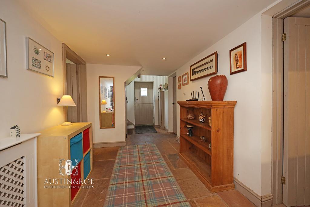 19' 7'' x 7' 7'' (5.97m x 2.34m) The Property is entered via a sage green timber stable door in to the impressive double height Entrance Hallway, with neutral décor, reaching up to the First Floor vaulted ceiling with exposed wooden beams and spot light bar, flagstone flooring and an open staircase leading to the First Floor.