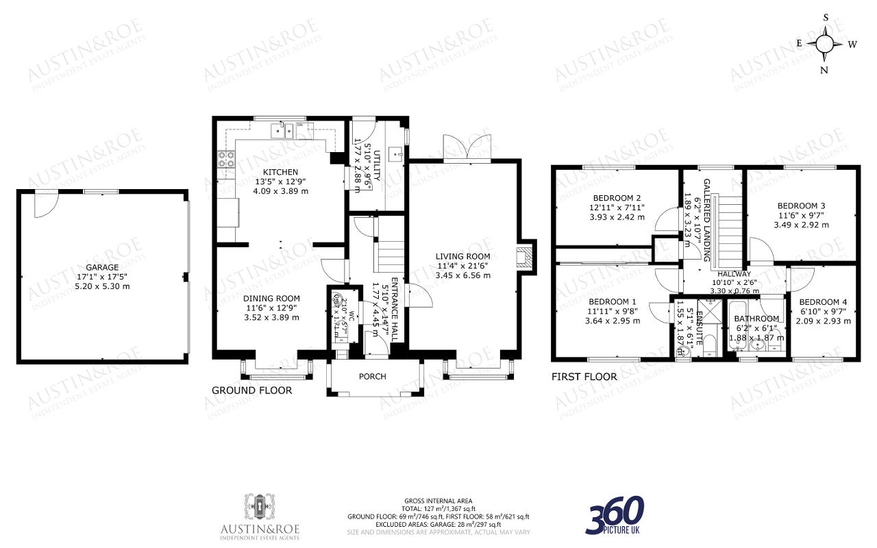 17' 0'' x 17' 4'' (5.2m x 5.3m) The Garage is accessed from the Driveway via two wooden 'up and over' garage doors, and from the garden through a double glazed door.