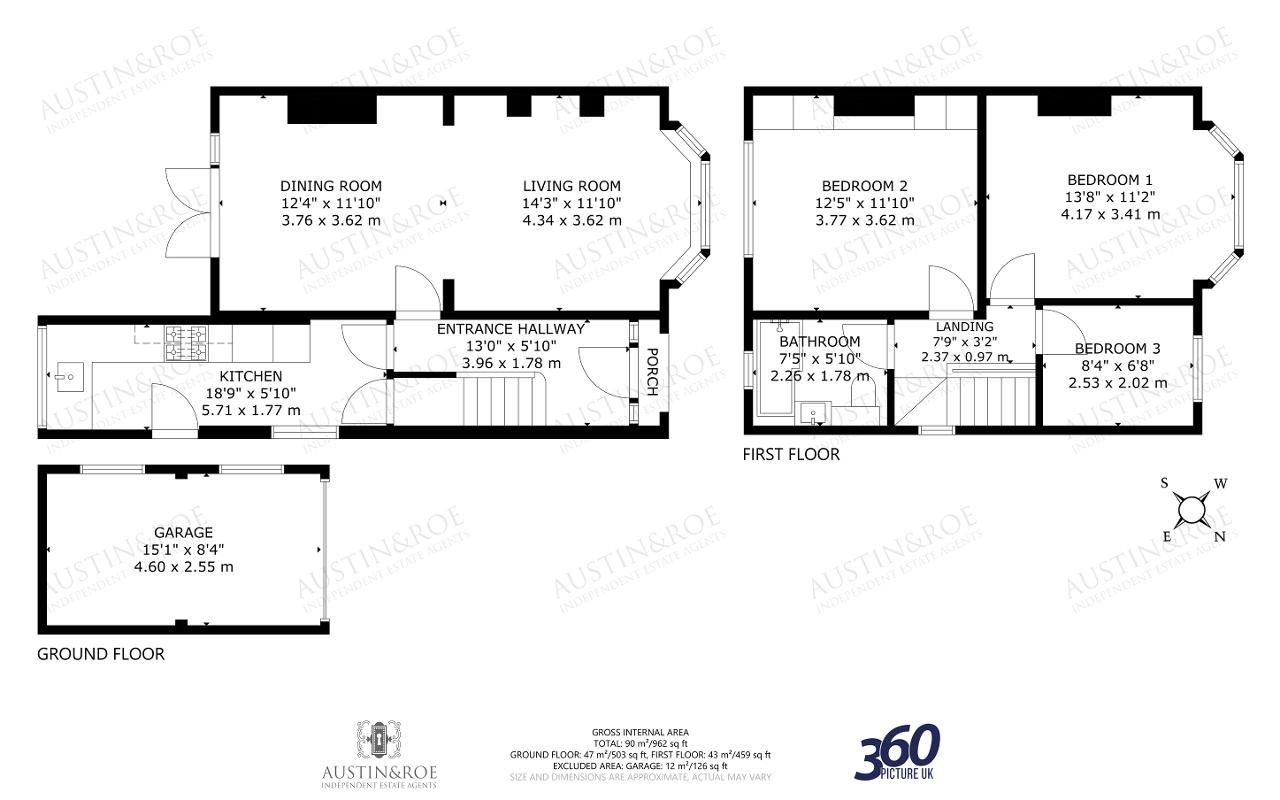 15' 1'' x 8' 4'' (4.6m x 2.55m) The useful detached Garage is accessed from the side of the Property and the Garden, it has a white metal 'up and over' door to the front, and two double glazed windows to the side.