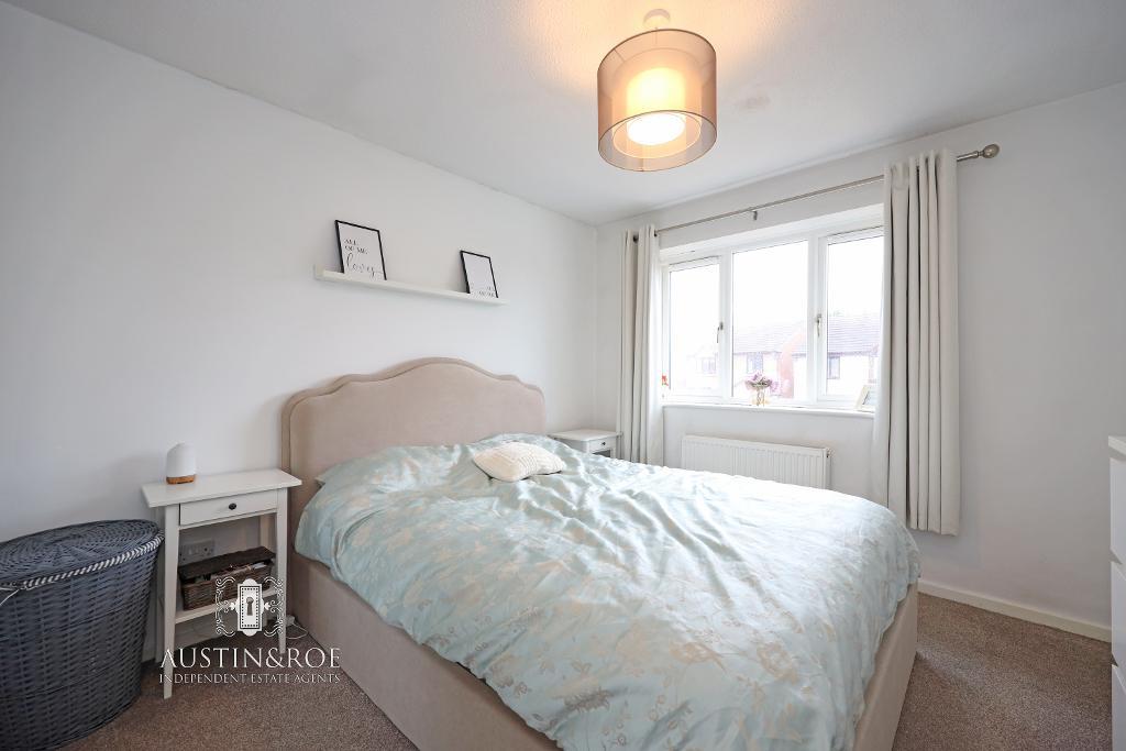 11' 5'' x 9' 6'' (3.5m x 2.9m) The Second Bedroom has neutral décor, a white ceiling with central pendant light fitting, a double glazed window to the rear aspect with a wall mounted central heating radiator below and neutral fitted carpet.