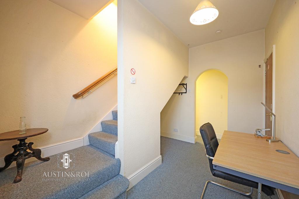 14' 1'' x 15' 8'' (4.3m x 4.8m) The Property is situated on the junction of both Wolverhampton Road and Cramer Street, with access directly from the pavement into the Shop / Office space, with neutral décor, half height white painted wall panelling with picture rail and coved cornicing, a white ceiling with two linear light fittings, two double glazed bay windows to the front aspect, an in built desk / reception desk and storage unit with shelving and sink, and oak flooring. There is a step up to the Hallway.