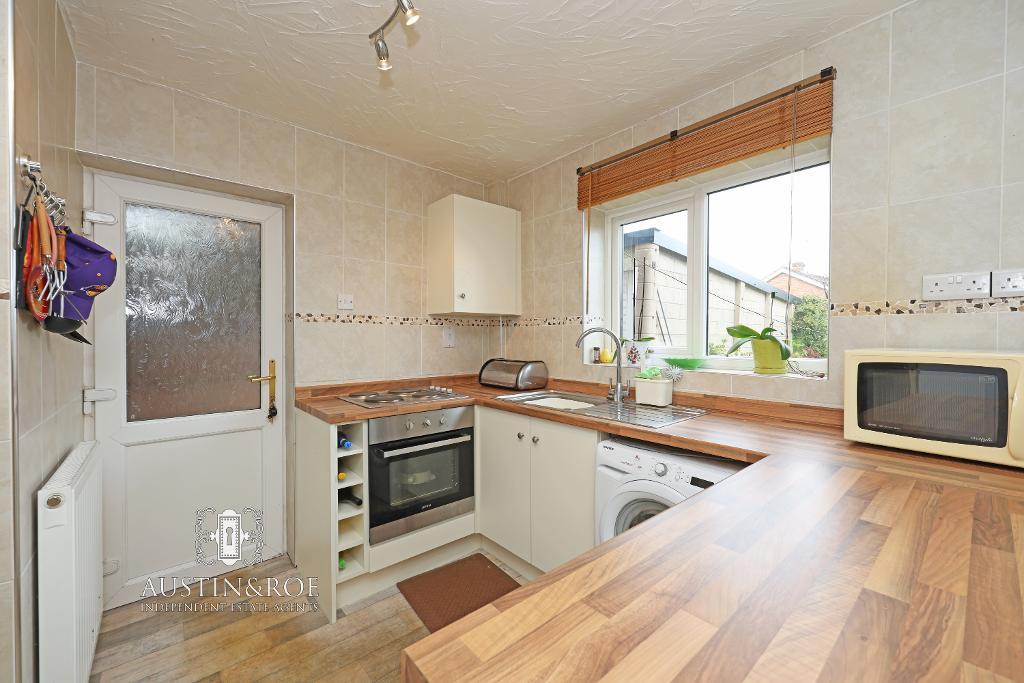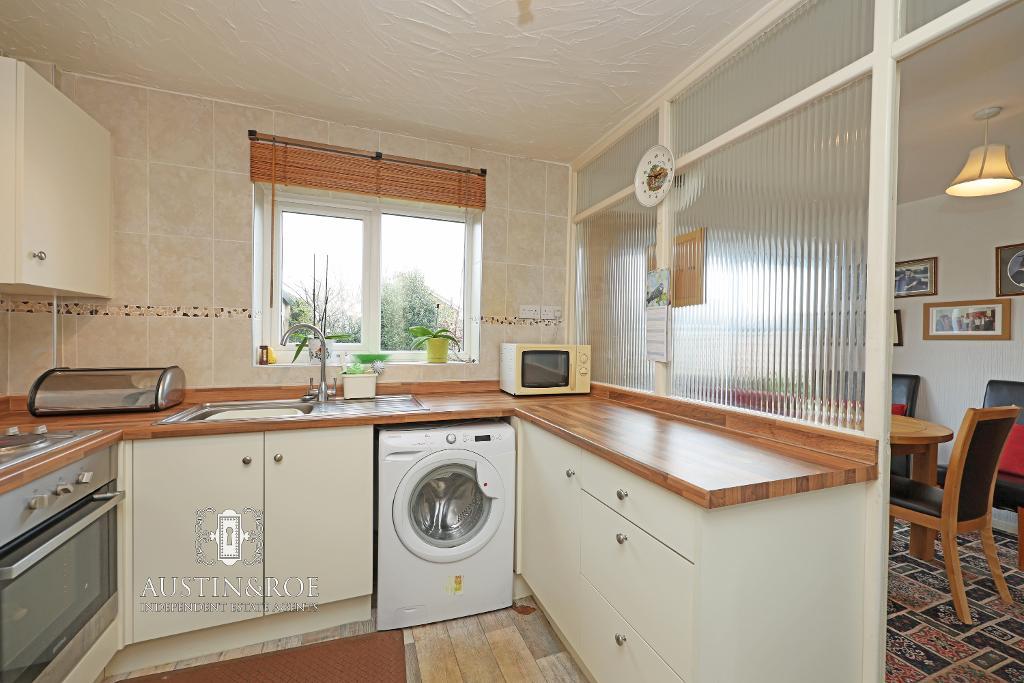 The Kitchen benefits from full height ceramic wall tiling, a white ceiling with a chrome spot light fitting, a double glazed window to the rear aspect, a wall mounted central heating radiator and wood effect vinyl flooring.