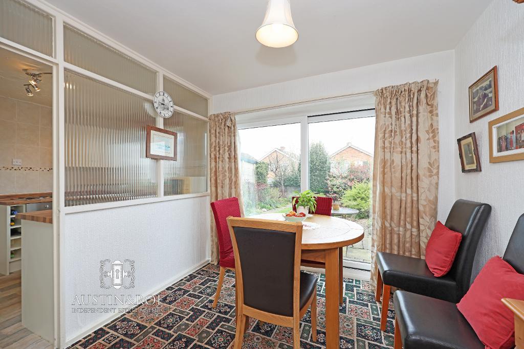 8' 10'' x 10' 5'' (2.7m x 3.18m) The Dining Area follows in style to the Living Room, with neutral décor, a white ceiling with central pendant light fitting, a wall mounted central heating radiator and patterned fitted carpet. A double glazed patio door opens in to the Garden, and a glazed partition with obscured glass and door leads in to the Kitchen.