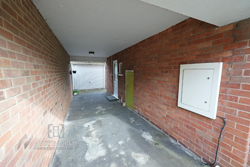To the front of the Property is a tarmacadam driveway leading in to the Carport and Garage, adjacent to a lawned area with shrubbery borders.