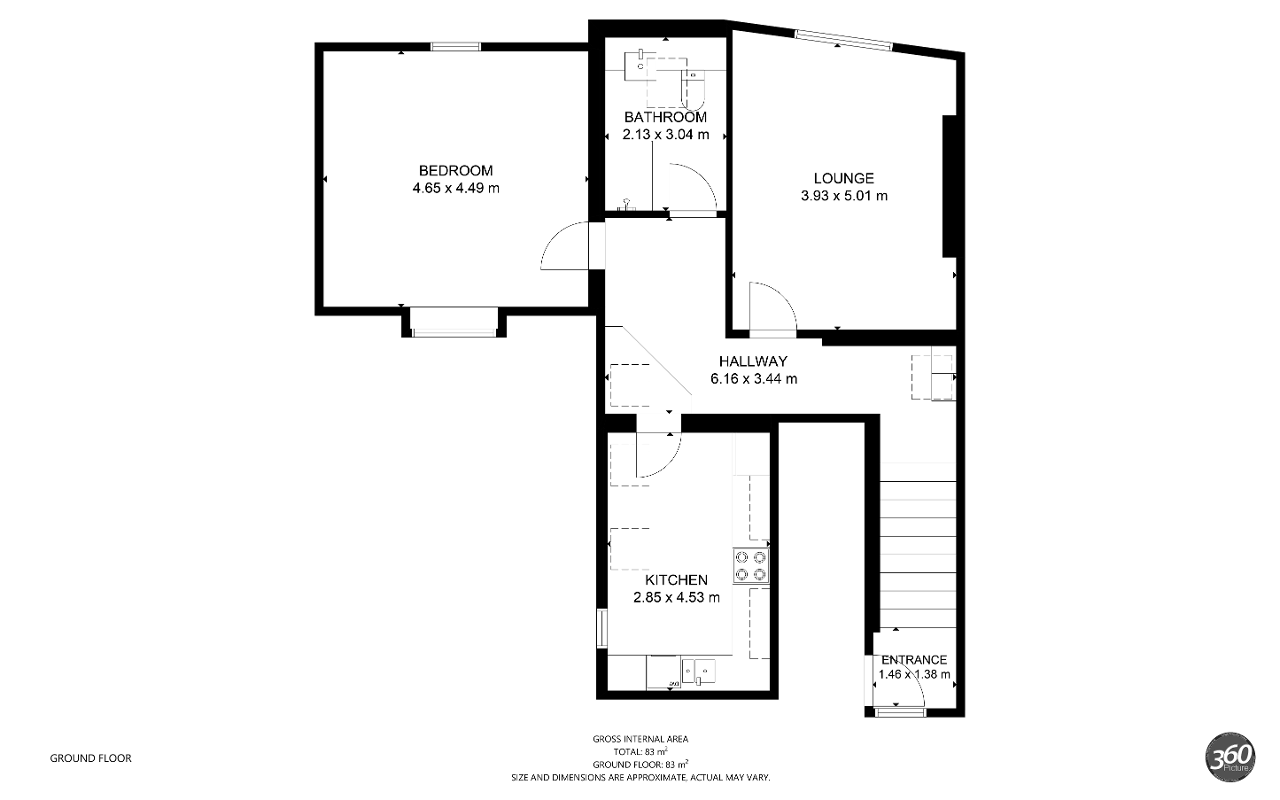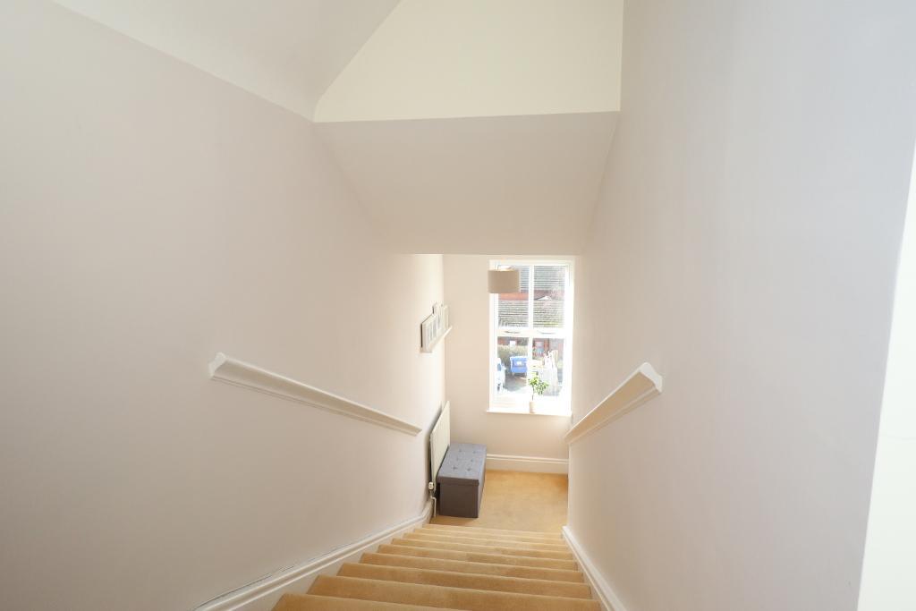 4' 9'' x 4' 6'' (1.46m x 1.38m) The Apartment is entered via a light wooden door into a small but welcoming Entrance, with pale grey decor, a white ceiling with. pendant light fitting, a double glazed window to the front aspect, a wall mounted central heating radiator, stairs rising to the Hallway above and a neutral fitted carpet. .