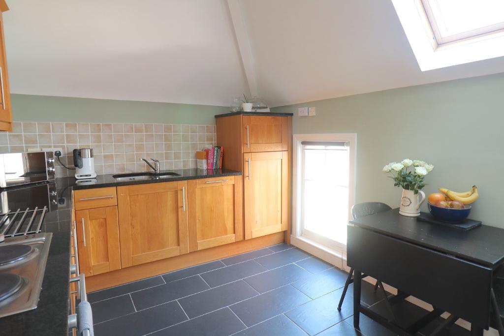 20' 2'' x 11' 3'' (6.16m x 3.44m) The impressive Hallway has pale grey decor, white vaulted ceiling with twin pendant light fittings and two "Velux" wooden double glazed roof windows, wall mounted central heating radiator and wooden laminate flooring. There are doors leading to the Lounge, Bedroom, Bathroom and a small step up to the Kitchen.