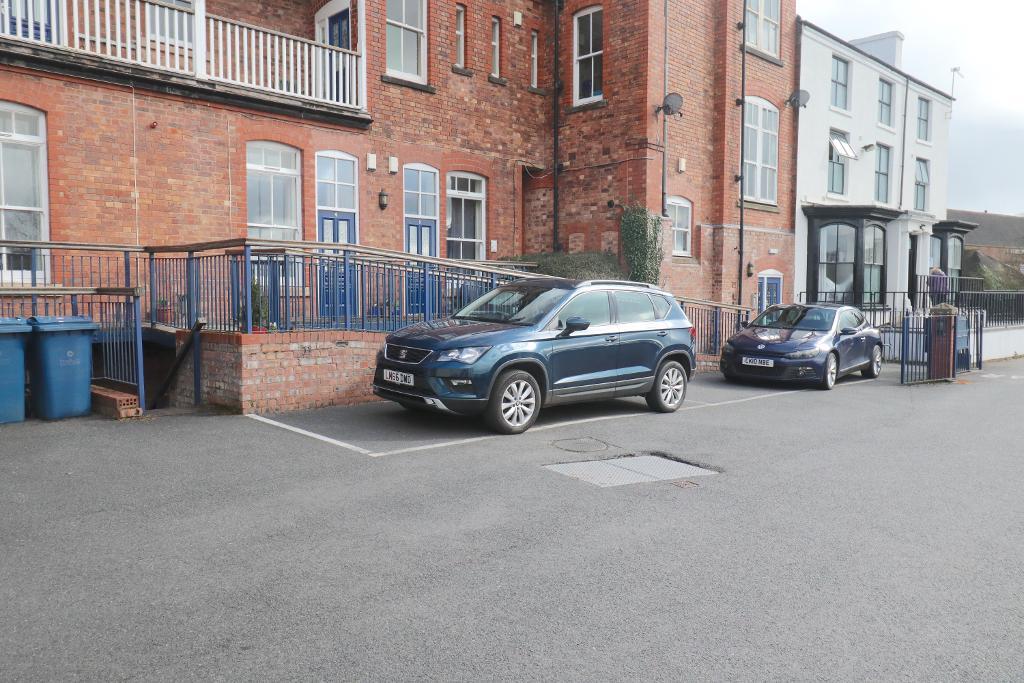 The property is tucked away behind gates with a carpark to the front of the building, communal south facing patio and designated car parking.
