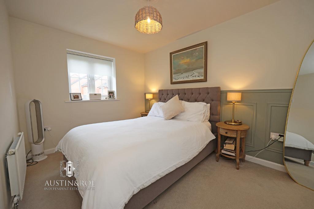 11' 10'' x 8' 5'' (3.61m x 2.58m) The Master Bedroom has neutral décor with a feature half height panelled wall in grey, a double glazed window to the rear aspect with fitted roller blind, a wall mounted central heating radiator, and neutral fitted carpet. A door opens in to the En-Suite Shower Room.