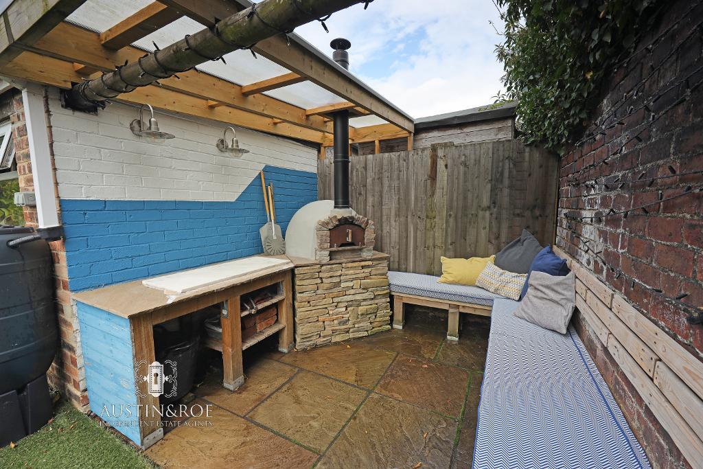 To the rear is a fully enclosed Garden, with a paved patio for alfresco dining and entertaining, a covered outdoor lounge area complete with pizza oven and lighting, a large low maintenance artificial grassed area and access to the Garage, all enclosed by well maintained privet hedging and brick / timber fencing.
