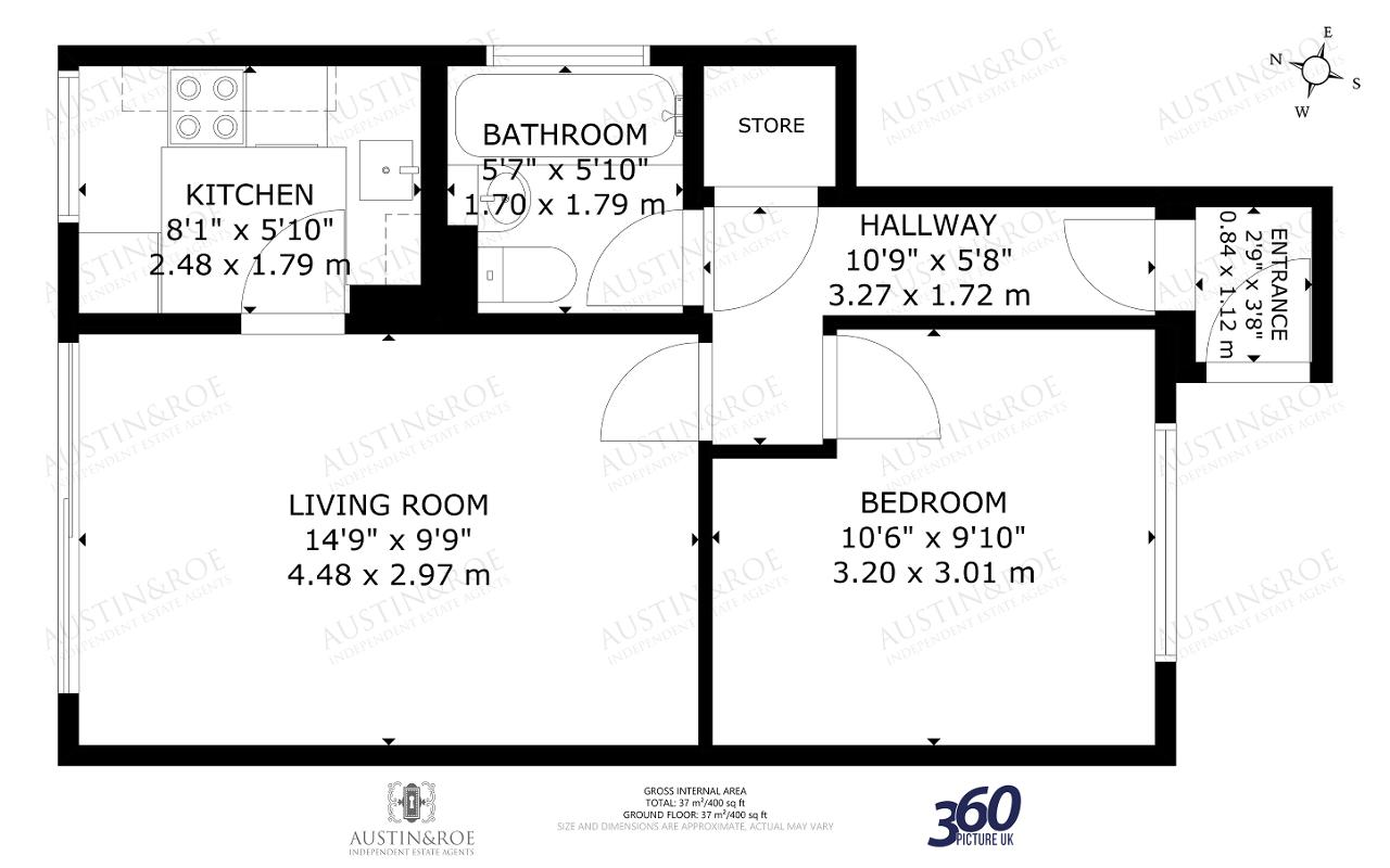 Doors open in to the Living Room, Bedroom, Bathroom and Store.