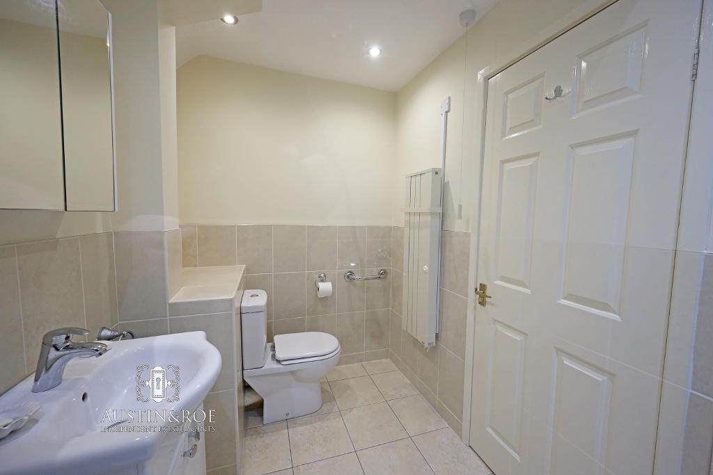 9' 4'' x 5' 3'' (2.87m x 1.61m) The modern Shower room benefits from half height stone effect ceramic wall tiling, full height in the showering area, a white ceiling with recessed spot lights, an electric wall mounted heated towel rail and stone effect ceramic floor tiles. The sanitaryware consists of a vanity unit with white wash hand basin and chrome mixer tap, a showering enclosure with glass screen, electric shower and chrome fittings and a close coupled WC with push button flush.