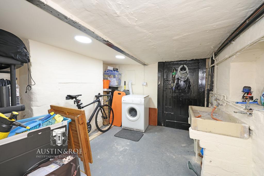 6' 6'' x 12' 5'' (1.99m x 3.8m) The useful basement storage has white painted brickwork walls, a white ceiling, painted concrete floor, lighting and power points.