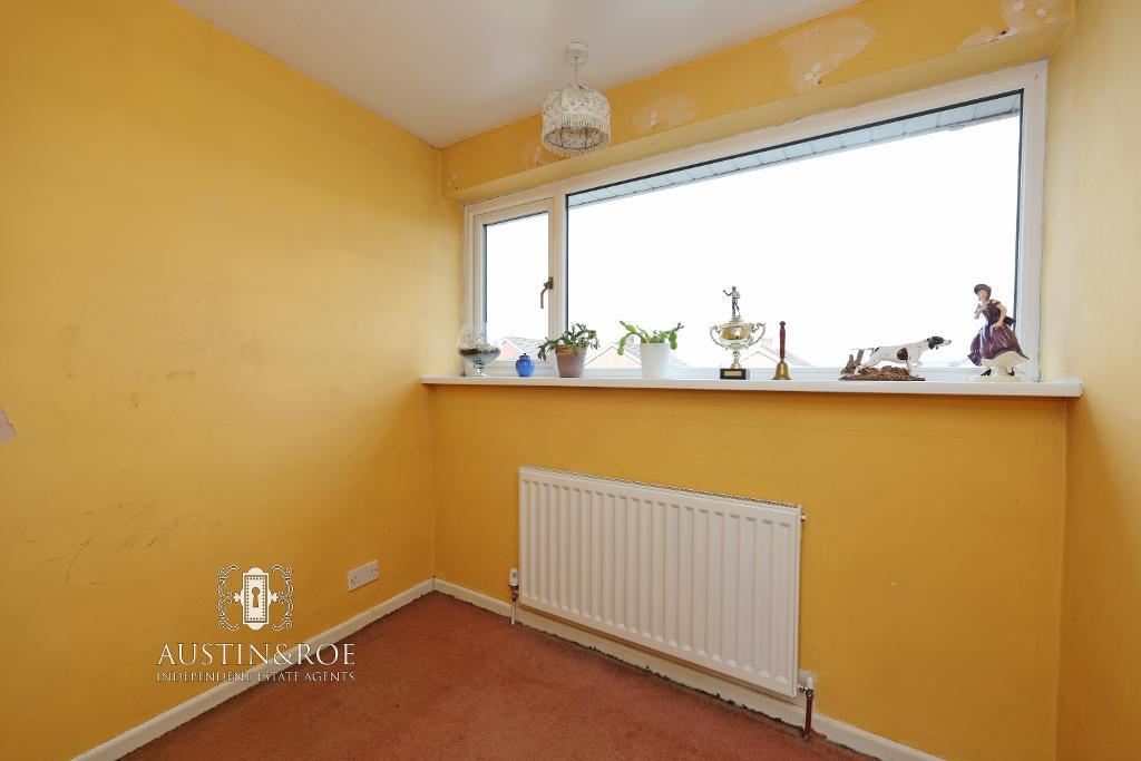 9' 8'' x 10' 1'' (2.97m x 3.08m) The Third Bedroom has neutral décor, a white ceiling with pendant light fitting, a double glazed window to the rear aspect with a wall mounted central heating radiator below, and fitted carpet.